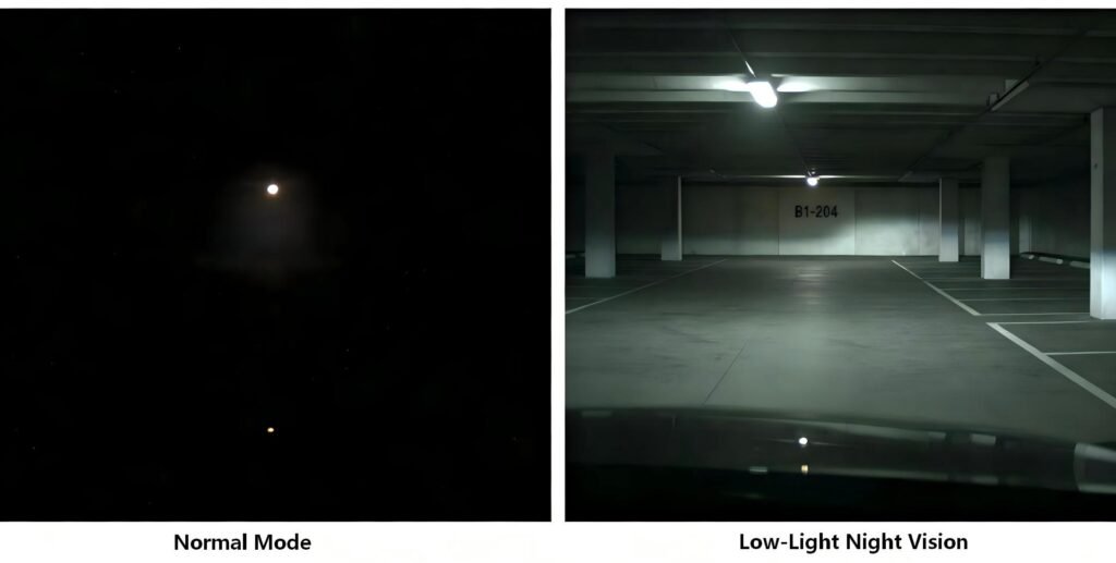 - Individual & Parking Mode: Provides “Time-Lapse” or “Impact Detection” security in unlit residential areas, capturing license plates that standard cameras would render as black silhouettes.